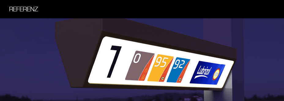Zeitgemäßes Design für einen modernen Tankstellenpreisturm. Ausgerüstet mit LED Preisanzeigen, beleuchtet mit LED Technik.